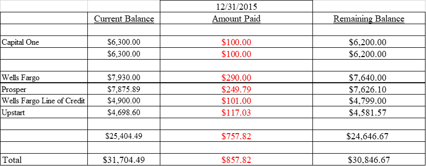 Next year, my focus is going to be paying down one specific debt. I’m specifically focusing on the Wells Fargo line of credit.