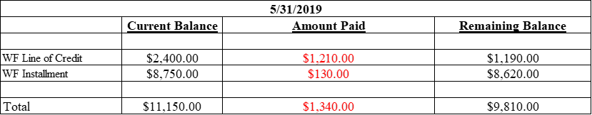 At the end of May, I’m closer to paying off the WF Line of Credit. This month I was able to get away and travel to Florida. My wife had a continuing education opportunity related to work. We stayed at a nice hotel located in Gulf Breeze that connected directly to the beach. It was during this time that we were able to eat at the local restaurants, and my wife enjoyed the saltwater. It’s moments like these that we need to take time away from work and our debt repayment plans to relax and enjoy life. Personally, it’s hard for me to decompress from work and I must force myself to relax. Despite how hard it is for me, your body needs to relax, and I encourage you to find moments, and schedule time to relax for your health. You can have all the wealth in the world, but if you don’t have your health then you can’t truly enjoy life.