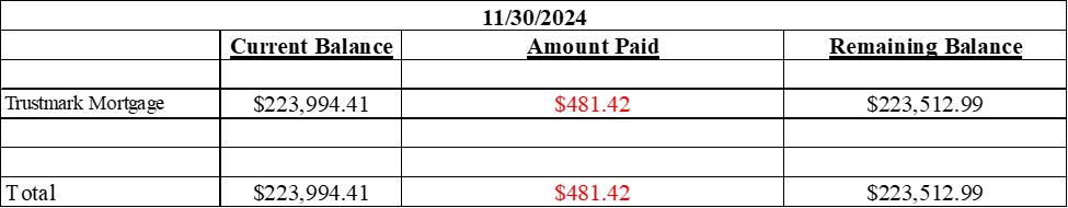 Ending November, our Thanksgiving was different. My son and I were here, and my wife and daughter were visiting my sister-in-law for Thanksgiving. In life things will be different, but your goal and focus should be the same. Jill had accumulated some credit card that I plan on paying to zero by the end of the year. Credit card debt – debt in general is a thief of your income, and your income will always be your number one key to building wealth. Remember to create or purchase assets that generate income monthly and or you know will be sold at some point to create a capital gain. What’s your plan for debt free?